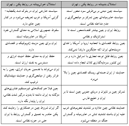 - چین ترجیح می دهد همکاری های حساس آن با ایران علنی نشده و باعث ایجاد حساسیت در منطقه و در آمریکا نشود.